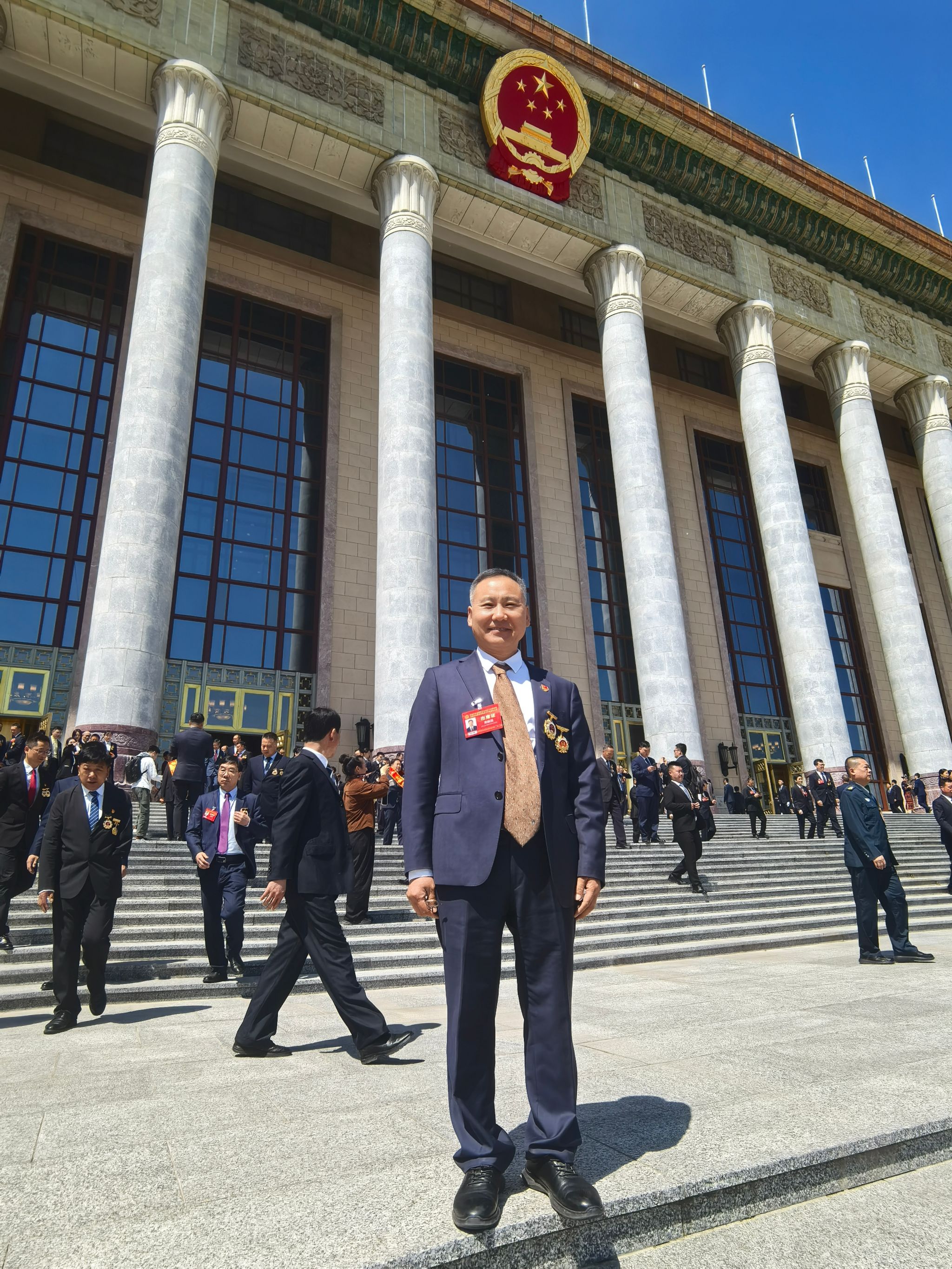 图为邢振国在人民大会堂前留影
