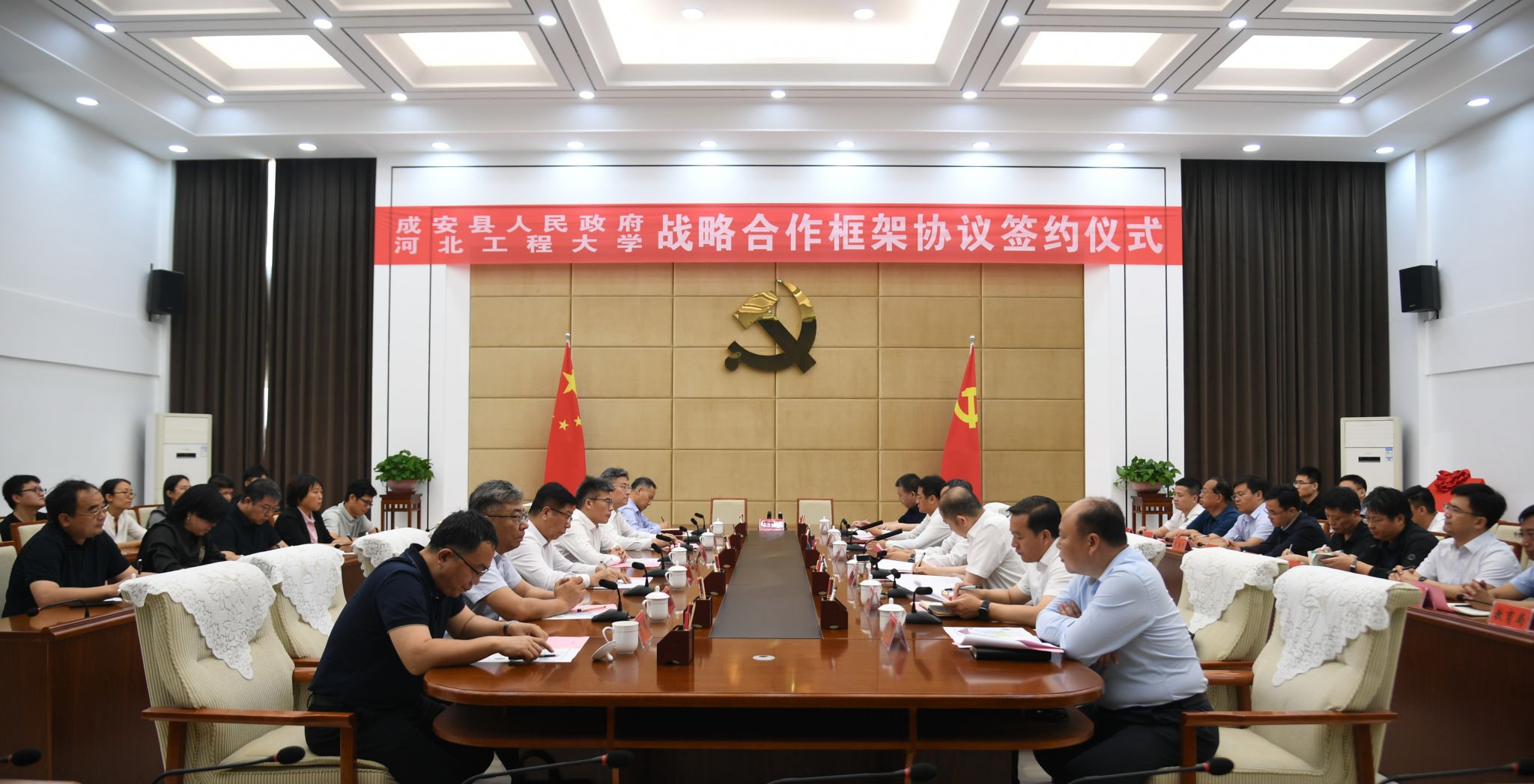 5月16日,华体网页版登录界面与成安县人民政府战略合作框架协议签约仪式在成安县举行。学校党委书记于树江、成安县委书记李东健出席并讲话,党委副书记、校长单耀军与成安县委副书记、县长刘丙胜共同为“河北工程大学技术转移中心成安中心”揭牌,党委常委、副校长何立新与成安县副县长杨艳峰代表双方签署《成安县人民政府—河北工程大学战略合作框架协议》,县领导杨宽、程泉山、霍鸿河出席活动。