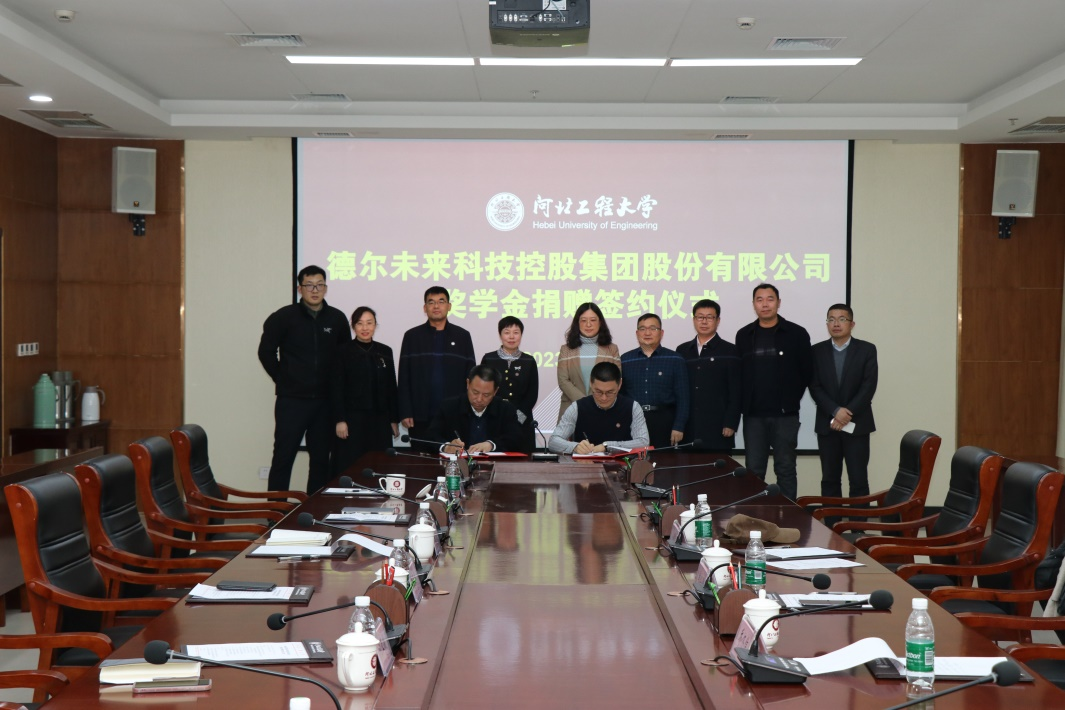 贾东水代表华体网页版登录界面教育发展基金会与姚红鹏签署了《捐赠协议书》,创新创业指导中心、能源与环境工程学院负责人和邯郸校友会代表参加仪式。
