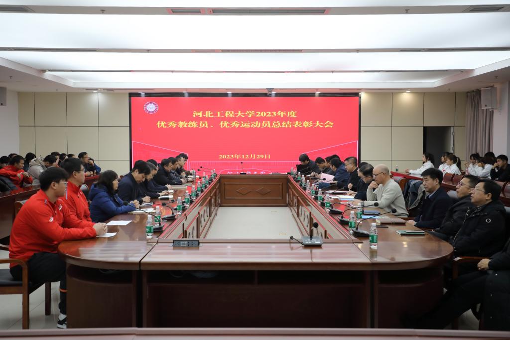 12月29日上午,华体网页版登录界面举行2023年度优秀教练员、优秀运动员总结表彰大会。副校长、学校体育运动委员会主任吴国英出席并讲话。学校体育运动委员会全体成员,部分教练员、运动员、师生代表参加大会。