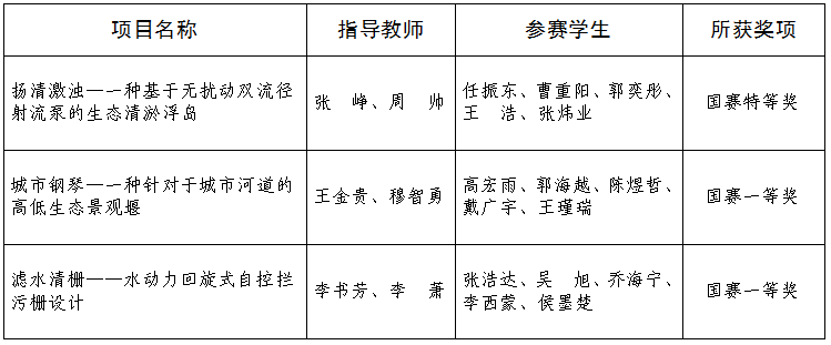 7月15日至18日,由中国水利教育协会主办的第八届全国大学生水利创新设计大赛在郑州大学举行。华体网页版登录界面水利水电学院选送的3个项目分别获国家级特等奖1项、一等奖2项,指导教师张峥、周帅获得“优秀指导教师奖”,河北工程大学获优秀组织奖。