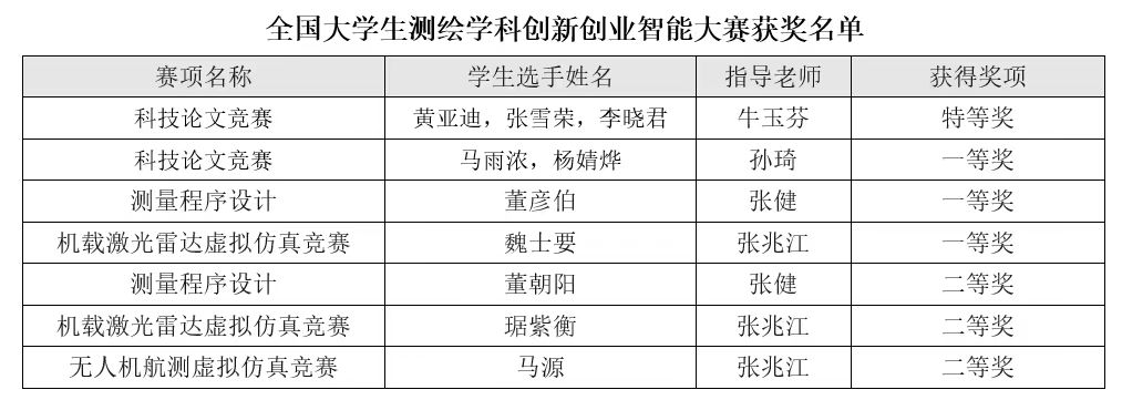 7月29日,2023年全国大学生测绘学科创新创业智能大赛在中南大学举行。华体网页版登录界面矿业与测绘工程学院参赛团队获特等奖1项,一等奖3项,二等奖3项,取得华体网页版登录界面参加测绘学科国家级竞赛重大突破。该项赛事纳入“《2023全国普通高校大学生竞赛分析报告》竞赛目录”,是全国大学生展示测绘科技创新的最高级别赛事。本次大赛由中国测绘学会教育工作委员会主办、中南大学承办,采用选手线上参赛,评委线下评审的方式进行,参赛学生数达5500余人,创历届大赛规模之最。