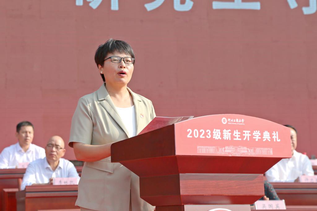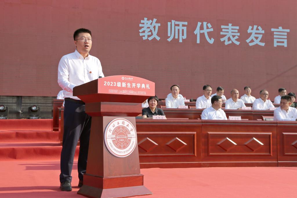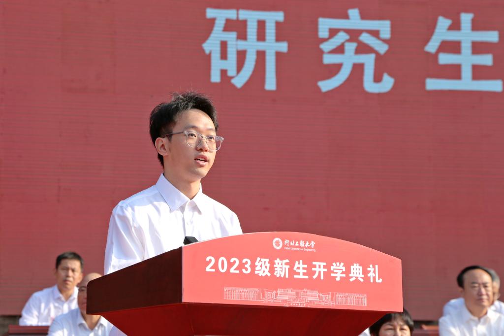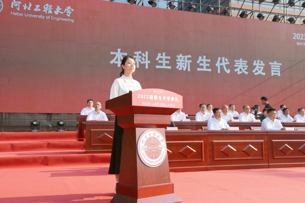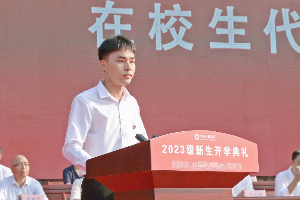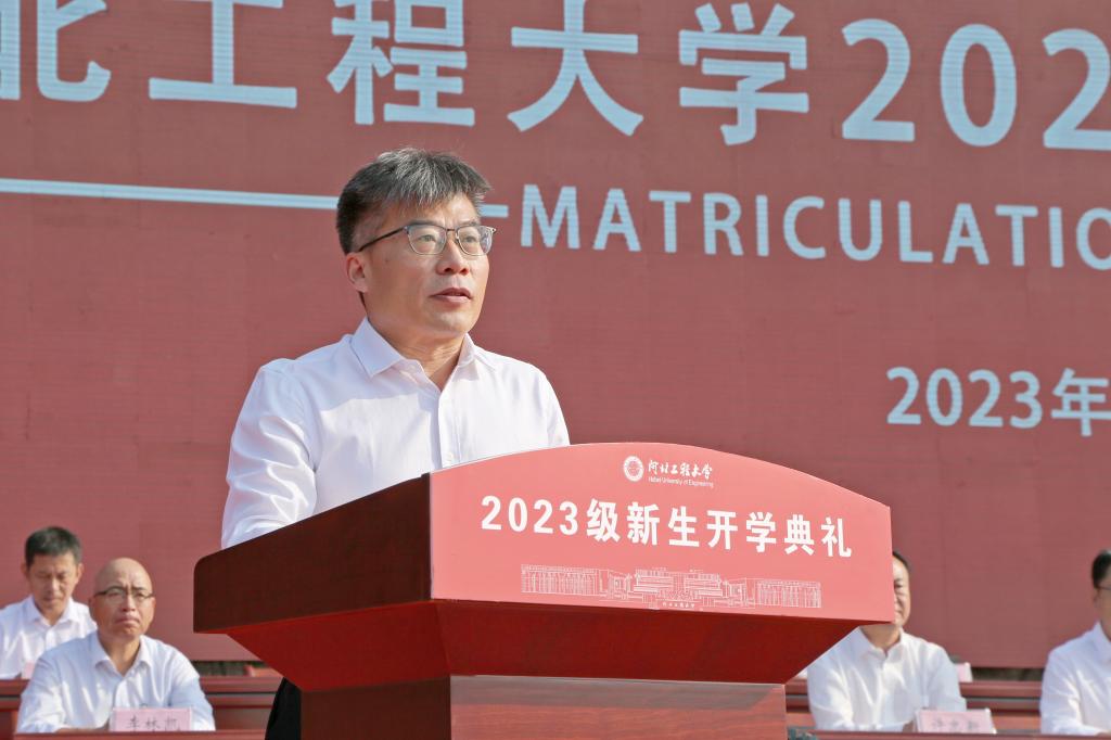 于树江代表学校全体师生员工和广大校友向5825名本科生和1243名研究生新同学表示祝贺和欢迎。他说,72年来,学校始终与新中国同向同行,20余万优秀毕业生在全国乃至世界各地建功立业。20年前,原四所驻邯高校合并组建新大学,学校开启了持续跨越发展的新篇章,逐步成长为河北省重点骨干大学、河北省政府与水利部共建高校、河北省重点支持的国内一流大学建设高校,形成了从学士、硕士到博士完整的人才培养体系,同学们在全国大学生创新创业大赛、方程式汽车大赛、机器人大赛、“挑战杯”系列科技竞赛和射击世锦赛、全国运动会、全国大运会上斩金夺银,展现了工程大学学子的卓越风采。