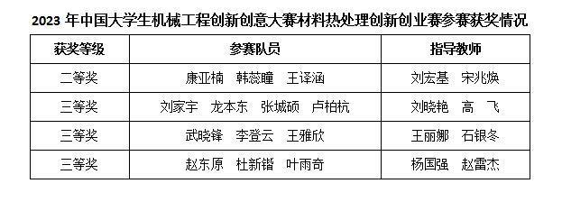 近日,中国机械工程学会热处理分会公布了2023年中国大学生机械工程创新创意大赛第九届材料创新创业赛结果,华体网页版登录界面获二等奖1项,三等奖3项。