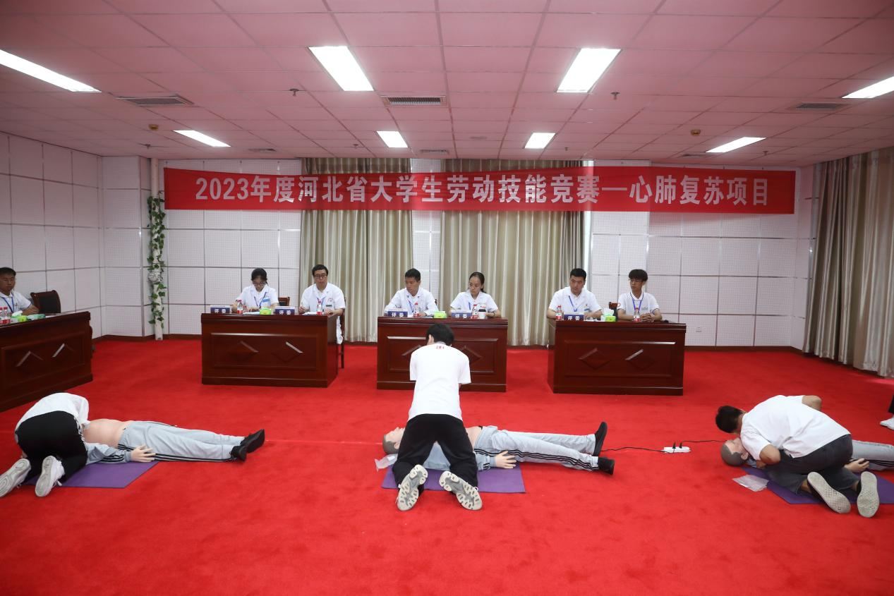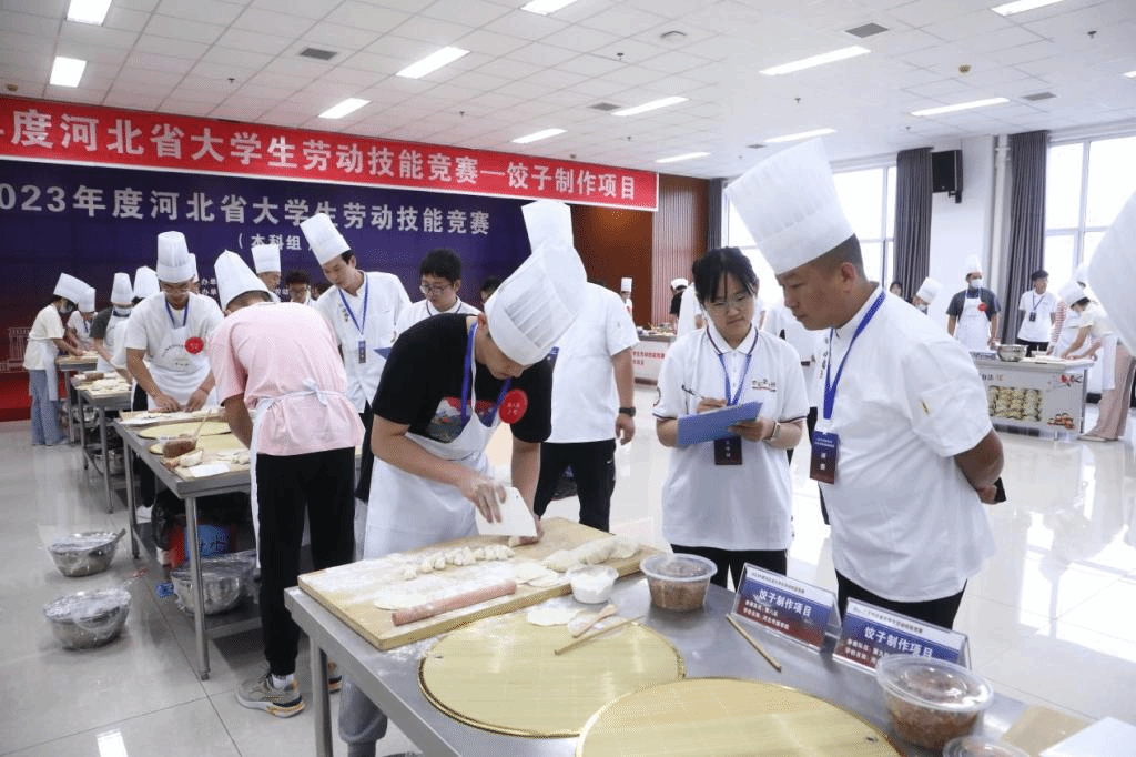 此次竞赛由河北省教育厅主办,河北省学校劳动教育教学指导委员会和华体网页版登录界面承办,设饺子制作、应急救护(外伤包扎、心肺复苏)和软绳梯制作等三个比赛项目,竞赛评委分别来自知名餐饮公司星级大厨、市120急救中心及各医院专家、市消防救援支队和高职院校专业教师等,来自全省43所本科院校的215名师生参加比赛。