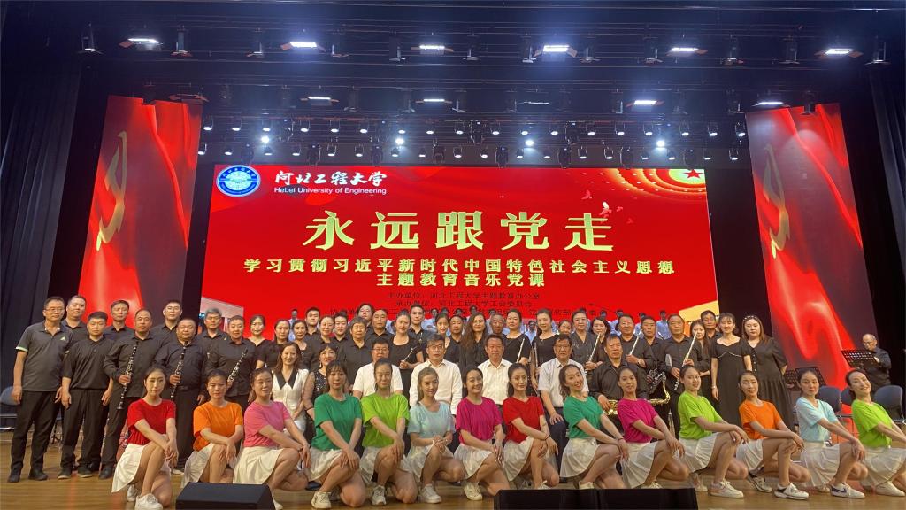 6月27日,华体网页版登录界面主题教育领导小组办公室主办的“永远跟党走”学习贯彻习近平新时代中国特色社会主义思想主题教育音乐党课在会议服务中心举办。校领导于树江、牛景峰、贾东水、张金江和900余名师生党员共同参加活动。邯郸学院、邯郸职业技术学院和邯郸幼儿师范高等专科学校相关领导应邀参加。
