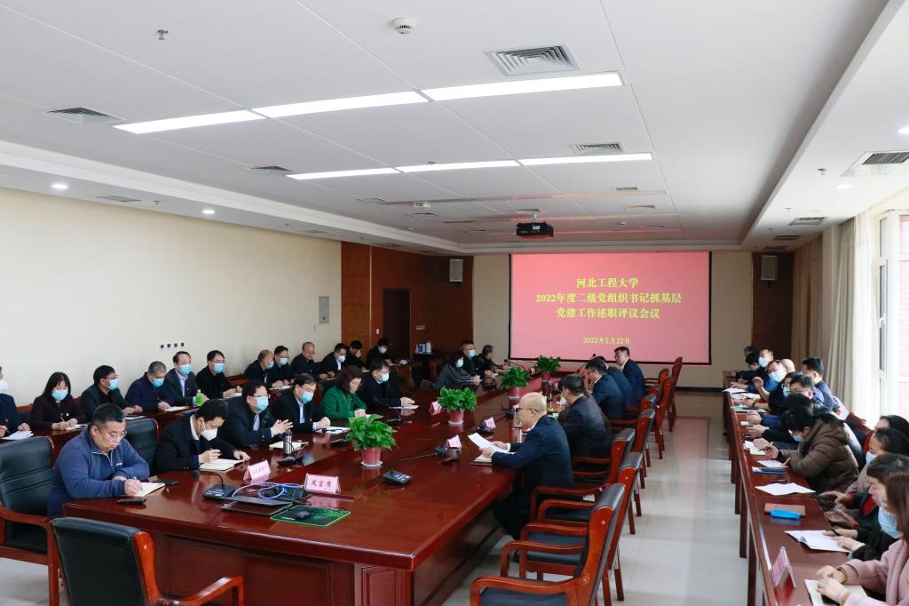 2月22日上午,华体网页版登录界面召开2022年度二级党组织书记抓基层党建工作述职评议考核会议。校党委副书记、校长于树江出席并讲话,校领导董志霄、王虎平、贾东水、张金江、刘心出席,校党委委员、校纪委委员、各二级党组织负责人,部分党代会代表、基层党员代表参加会议。会议由校党委常委、副校长刘心主持。