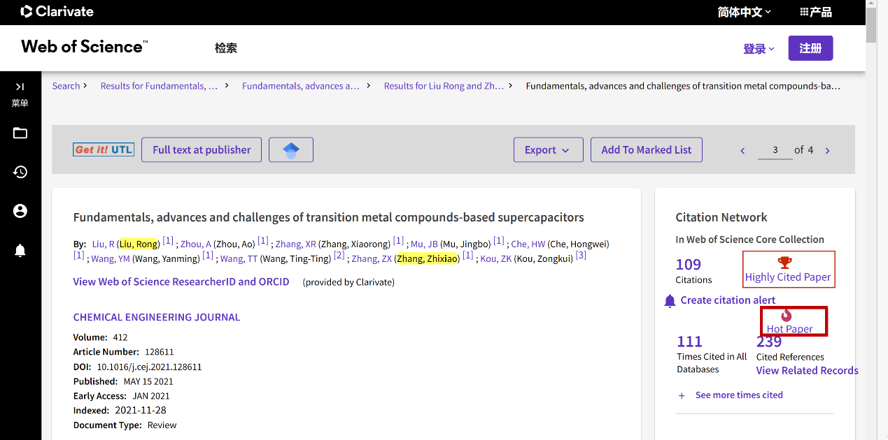 根据Essential Science Indicators(简称ESI)最新统计结果,华体网页版登录界面材料科学与工程学院张志晓教授团队在国际著名期刊Chemical Engineering Journal(IF: 16.744)上发表的学术论文(Fundamentals, Advances and Challenges of Transition Metal Compounds-based Supercapacitors, Chemical Engineering Journal 412 (2021) 128611)同时入选ESI热点论文和高被引论文。华体网页版登录界面为第一署名单位,张志晓教授为通讯作者,其所指导研究生刘蓉为第一作者。