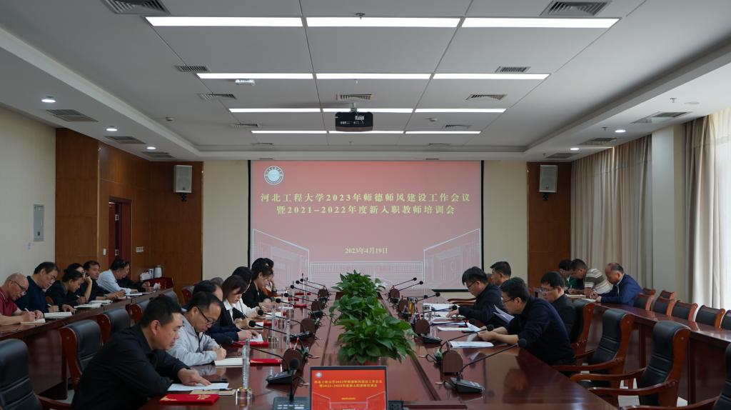 会议表彰了学校第二届师德标兵,传达了教育部教师工作司2023年在师德师风方面的重要部署和《河北工程大学师德失范通报警示制度》,通报了教育部公开曝光第十一批7起违反教师职业行为十项准则典型案例,总结了学校2022年师德师风建设工作,部署了学校2023年师德师风建设重点工作,启动了2021-2022年度新入职教师培训工作。