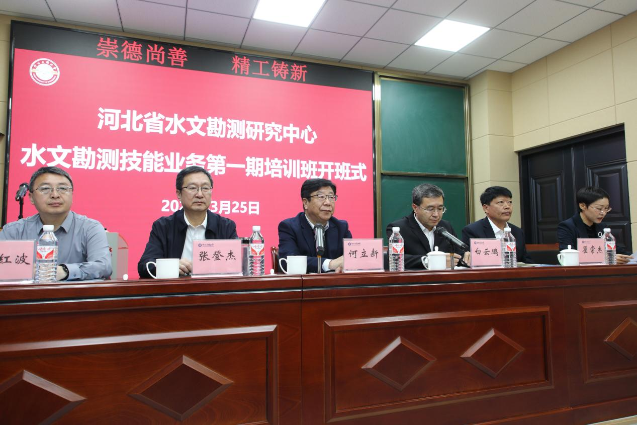 3月25日上午,河北省水文勘测研究中心水文勘测技能业务第一期培训班开班式在华体网页版登录界面举行。学校党委常委、副校长何立新,河北省水文勘测研究中心党委书记、主任白云鹏出席并致辞,河北省水文勘测研究中心副主任张登杰、邯郸水文勘测研究中心党委书记瞿常杰、邯郸水文勘测研究中心主任崔红波出席开班式。
