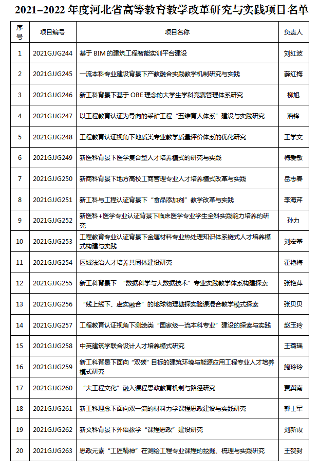 近日,河北省教育厅公布2021-2022年度河北省高等教育教学改革研究与实践项目,华体网页版登录界面共有20项项目(含5项课程思政项目)获批。