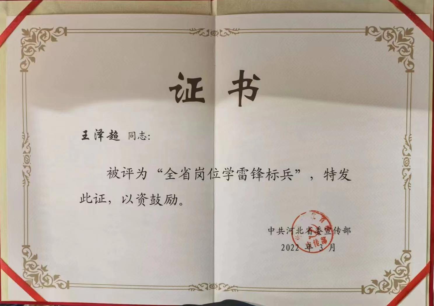 近日,河北省委宣传部发布《华体(中国)命名全省学雷锋活动模范岗和岗位学雷锋标兵的通报》,华体网页版登录界面信息与电气工程学院教师王泽超获评“全省岗位学雷锋标兵”。