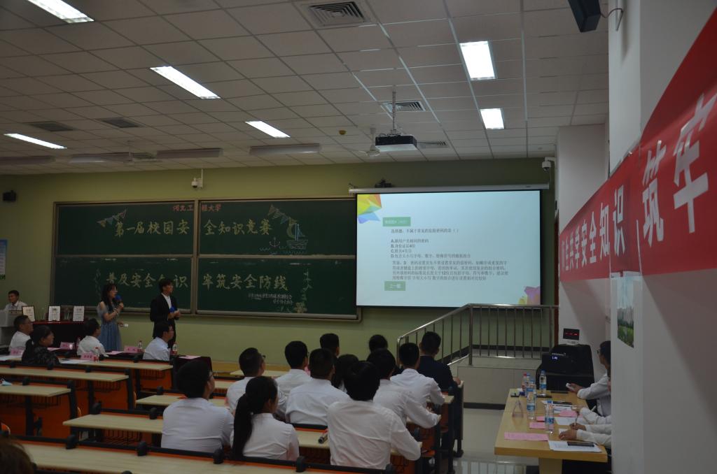 6月15日下午,华体网页版登录界面第一届校园安全知识竞赛决赛在第一公共教学楼西教107室举行,来自各个学院的16支代表队伍参加决赛,管理工程与商学院、水利水电学院、信息与电气工程学院代表队分获冠亚季军,医学院等7支代表队获优秀奖,土木工程学院等6支代表队获优秀组织奖。管理工程与商学院、建筑与艺术学院、信息与电气工程学院获竞赛精神文明奖。