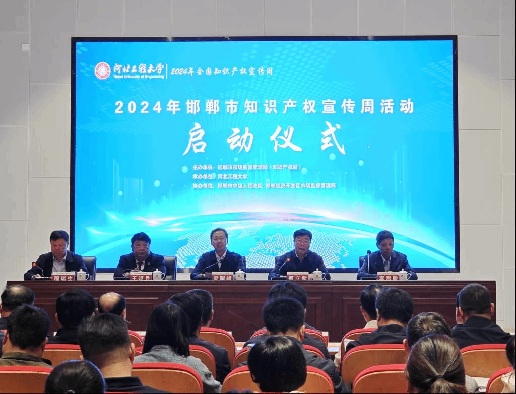 4月20日上午,由邯郸市市场监督管理局(知识产权局)主办,河北工程大学承办的2024年邯郸市知识产权宣传周活动启动仪式在华体网页版登录界面举行。邯郸市市场监督管理局党组书记、邯郸市知识产权局局长梁耀峰,邯郸市市场监督管理局二级调研员程瑞生,邯郸市中级人民法院副院长王晓兵,学校党委常委、副校长何立新出席启动仪式。