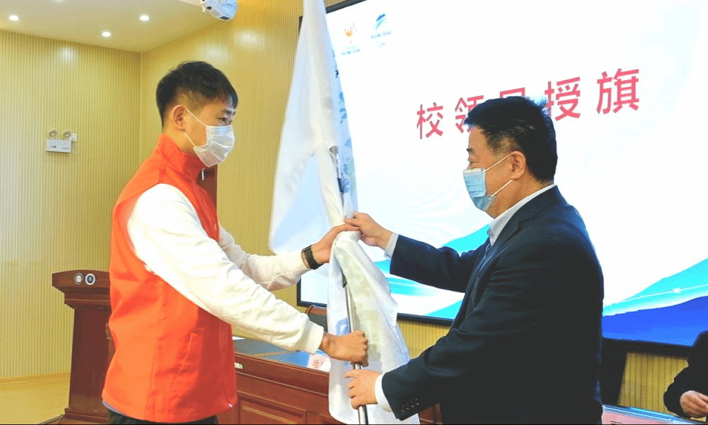 会上,哈明虎为志愿服务团授旗并宣布“北京2022年冬奥会和冬残奥会河北工程大学志愿服务团出征”。