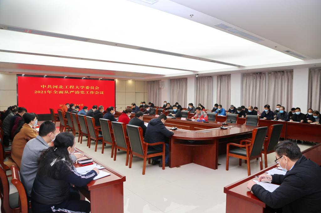 校党委常委、副校长贾东水传达了十九届中央纪委五次全会、省纪委九届六次全会,2021年教育部教育系统全面从严治党工作视频会议、2021年全省教育系统全面从严治党工作视频会议精神,校党委副书记、纪委书记、河北省监委驻河北工程大学监察专员王虎平代表校党委作2020年全面从严治党工作报告,安排部署2021年工作任务。