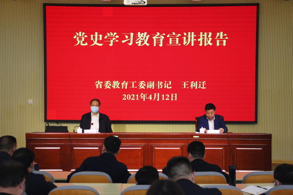 4月12日,省委教育工委副书记王利迁来校作党史学习教育宣讲报告。校党委理论学习中心组成员、不是中心组成员的校领导,校党史学习教育领导小组办公室工作人员、校党史专家宣讲团成员及党员学生代表聆听了宣讲报告。校党委书记哈明虎主持宣讲报告会。