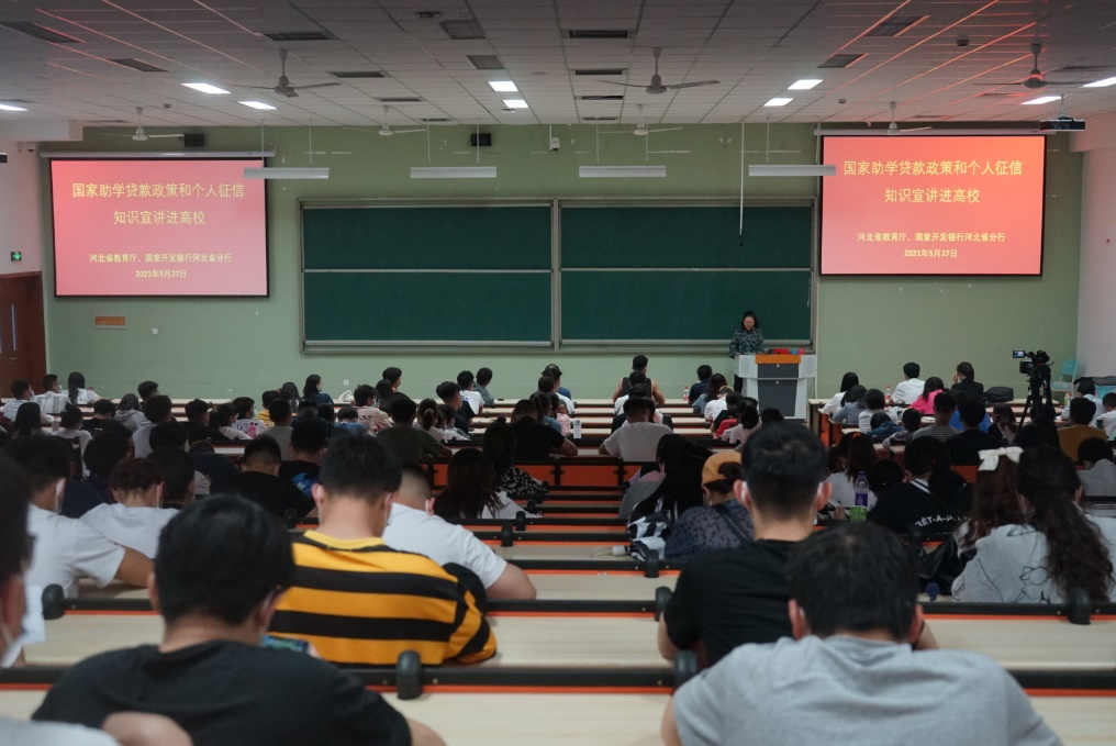 宣讲会上,河北省教育厅学生资助管理中心于笑妍介绍了高校学生资助政策;国家开发银行河北省分行黄小梅介绍了国家助学贷款申请条件、申请流程、续贷流程、还贷流程以及个人征信相关知识,并警示同学们一定要合理消费、珍视个人信用、远离不良校园贷。