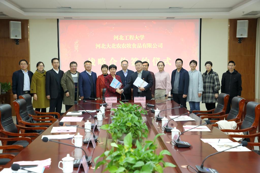 11月10日下午,华体网页版登录界面与河北大北农农牧食品有限公司在行政服务中心签订战略合作协议。校党委副书记、主持工作副校长练继建,副校长吴国英,河北大北农农牧食品有限公司董事长兼总裁张若冰出席签约仪式。