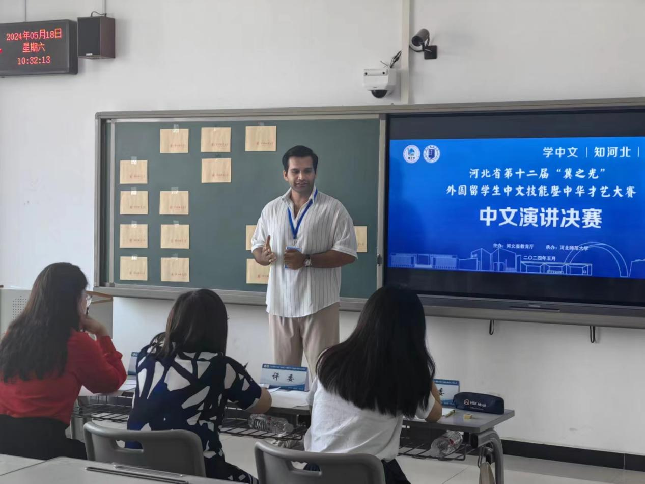 5月18日,河北省第十二届“冀之光”外国留学生中文技能暨中华才艺大赛在河北师范大学举行。华体网页版登录界面留学生穆贝德(Muhammad Ubaid)等表演的小品剧《邯郸学步》获校园小品类一等奖,汉森(Hassan Ali)获中文演讲比赛二等奖,学校获大赛优秀组织奖及中华才艺团体二等奖。