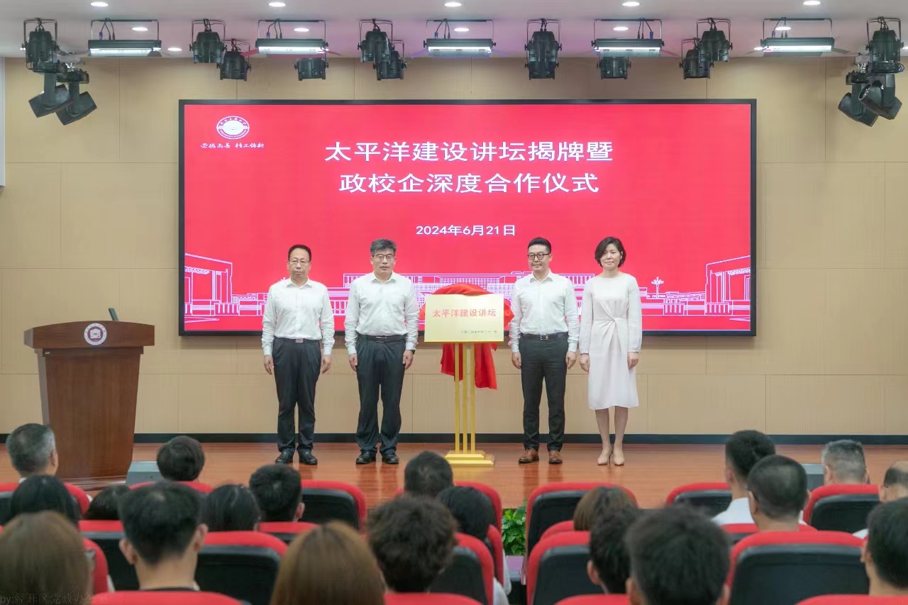 于树江、张敬超、宋少庭、宋为为共同为太平洋建设讲坛揭牌。