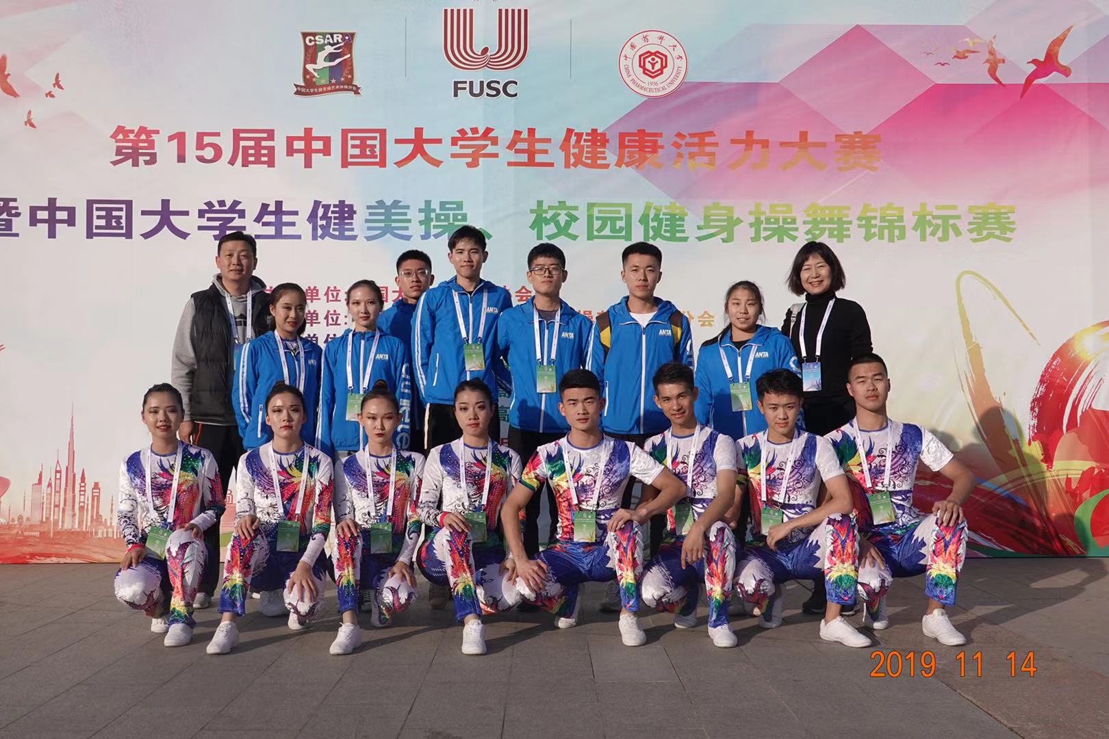 第十五届全国大学生健美操比赛在中国药科大学(南京)举行,在刚刚结束的比赛中,华体网页版登录界面获得普通院校A组混合三人操、男子三人操、男子五人操三个冠军,获得混双亚军,男单、女子五人操两个季军。