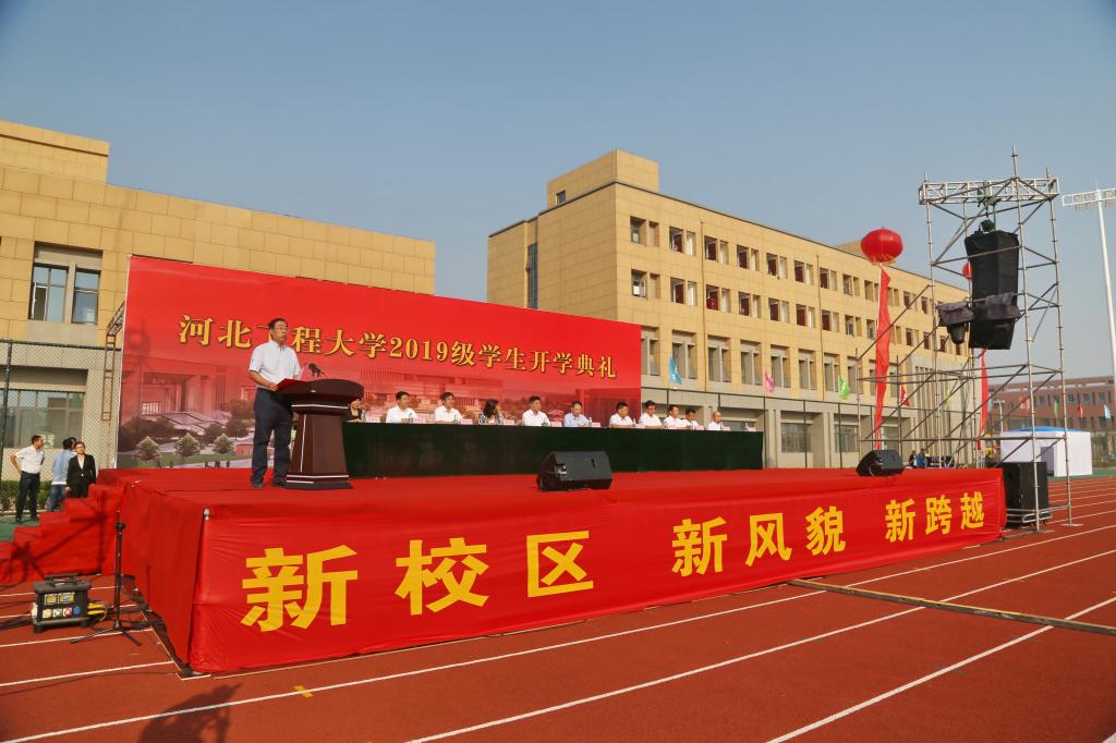 校党委副书记、主持工作副校长练继建致辞并与全体新生分享了如何度过大学生活、如何学习和领悟大学之道、如何践行大学精神。他强调,大学之道,首在立德,同学们要涵养家国情怀,把人生理想融入国家和民族的事业中,成就一番事业;大学之道,贵在求知,同学们要树立良好学风并内化成为探索真理、独立思考的精神追求;大学之道,重在创新,同学们要努力提高创新能力,通过劳动实践,激发感性能力、实践能力和创造能力;大学之道,美在大爱,同学们要爱祖国、爱学校、爱老师、爱同学,要认识到学校是学术、荣誉共同体,要培养爱校荣校情怀,培养团队意识和团队精神。他希望,同学们要以“使命在肩,奋斗有我”的精神,不忘初心,砥砺前行,在河北工程大学的岁月里书写人生中最绚丽、最精彩的华章,成为中华民族加速迈向伟大复兴的蓬勃力量!