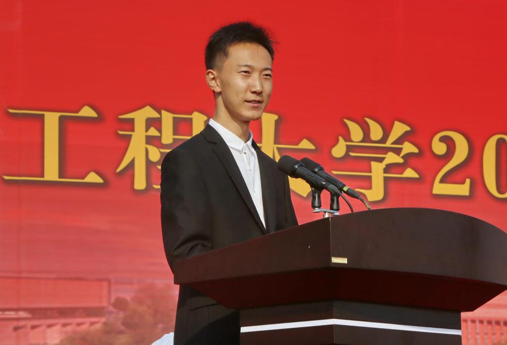图为新生代表、建筑与艺术学院建筑学专业学生梁超发言