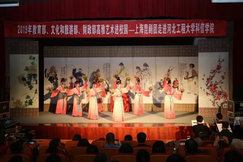 9月23日、24日, 由教育部、文化和旅游部、财政部联合举办的2019年“高雅艺术进校园”活动,分别在华体网页版登录界面新校区和科信学院上演经典昆剧《牡丹亭》,为全校师生献上了一场戏剧艺术盛宴。校领导哈明虎、练继建、何立新、牛景峰、贾东水、张金江出席活动,学校师生万余人观看了演出。