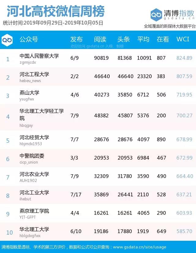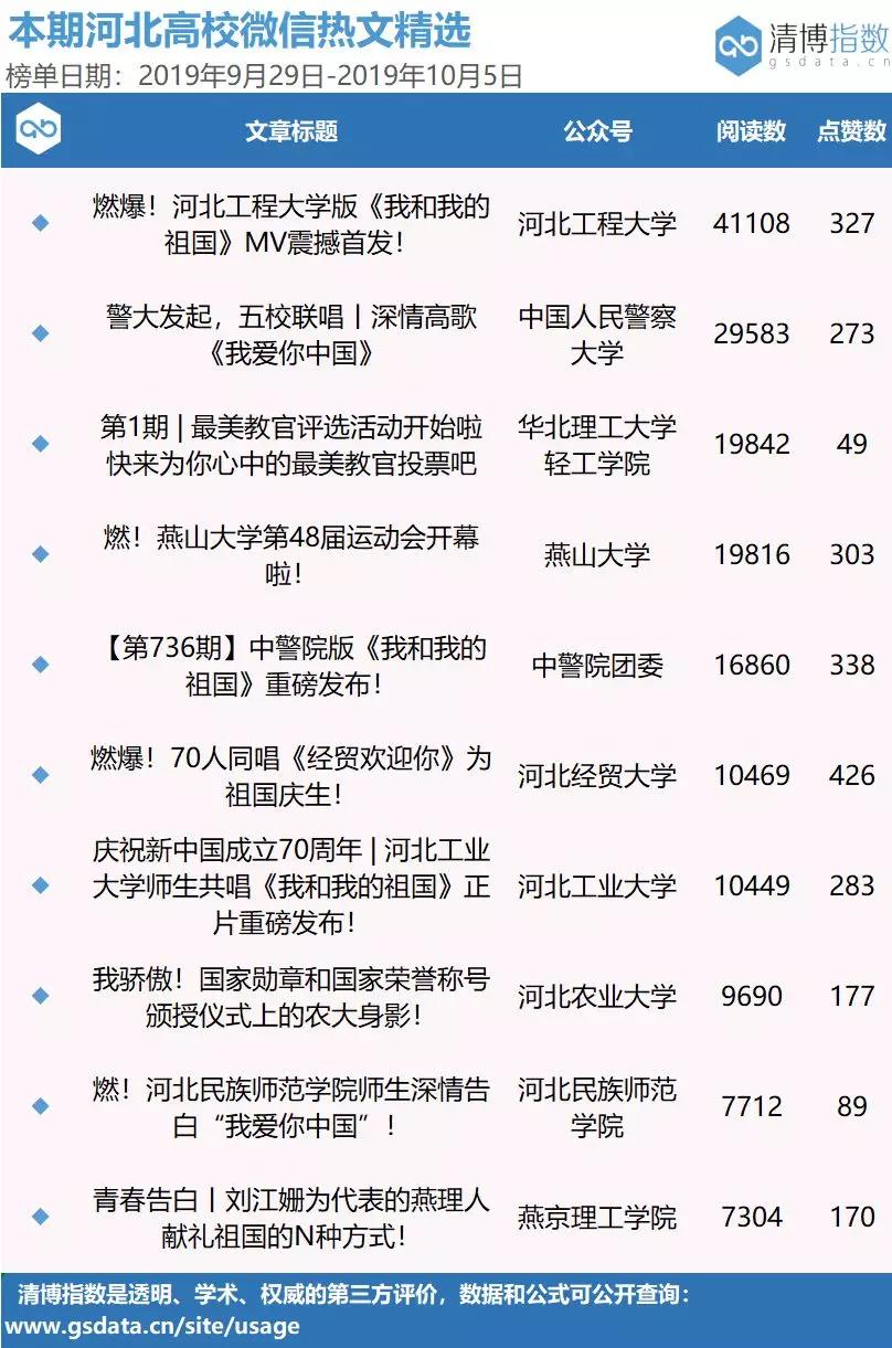 近年来,华体网页版登录界面官方新媒体传播影响力大幅提升。2019年以来,在省政府新闻办官方微信“河北发布”公布的河北政务微信影响力排行榜单中,华体网页版登录界面官方微信23次入围河北高校微信周榜榜单,创历史新高。在最新一期榜单中,华体网页版登录界面官方微信排名全省高校第二,“燃爆!河北工程大学版《我和我的祖国》震撼首发!”以4.1万次的点击率排名河北高校微信热文榜单第一名。官方微博连续两期入围河北校园高校官微排行榜月榜十强。