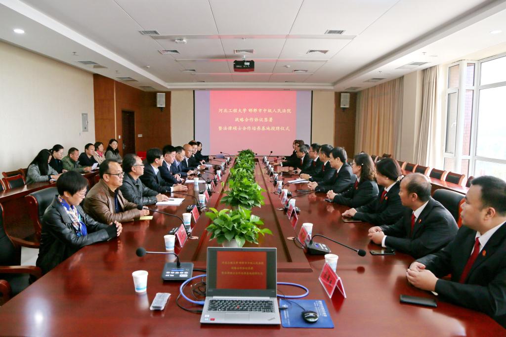 邯郸市中级人民法院10余名庭长、法官,华体网页版登录界面文法学院负责人、相关教师参加活动。