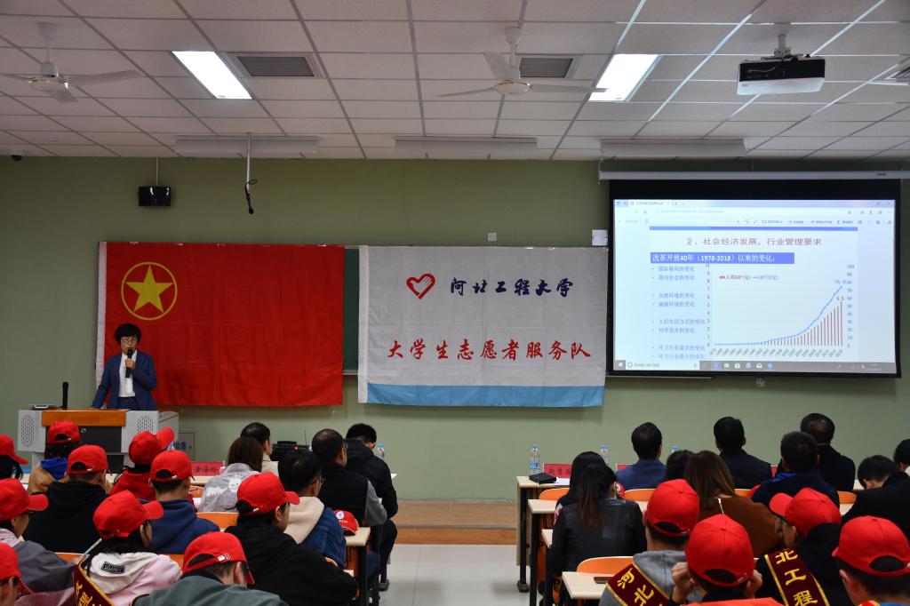 10月25日下午,由华体网页版登录界面与邯郸市推进生活垃圾分类工作领导小组办公室联合举办的邯郸市生活垃圾分类“万人志愿服务活动”大学生志愿者专题培训会,在第二公共教学楼西楼109室举行。校党委常委、副校长贾东水出席活动。校团委、后勤管理处负责人,各学院(部)团委书记、辅导员及青年志愿者代表200余人参加培训。