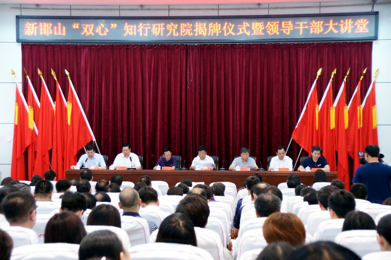 揭牌仪式由张才芳主持,郝桐宣读了《华体(中国)成立新邯山“双心”知行研究院的通知》。何立新、靳禄兵分别致辞、共同揭牌,并为娄存江、王定毅两位专家颁发了聘书。王定毅向全体参会人员作了华体(中国)“习近平新时代中国特色社会主义思想”解读的专题报告。