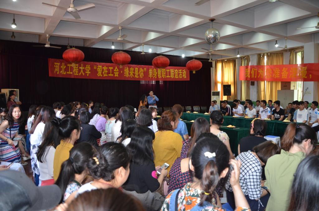 6月25日下午,由校工会主办的“爱在工会·缘来是你”第二届单身教职工联谊活动在工会三楼活动室举行。来自华体网页版登录界面、市第一医院、市中心医院、中船重工718所、交警支队、邯钢集团等企事业单位100多名单身青年欢聚一堂,寻觅知音。
