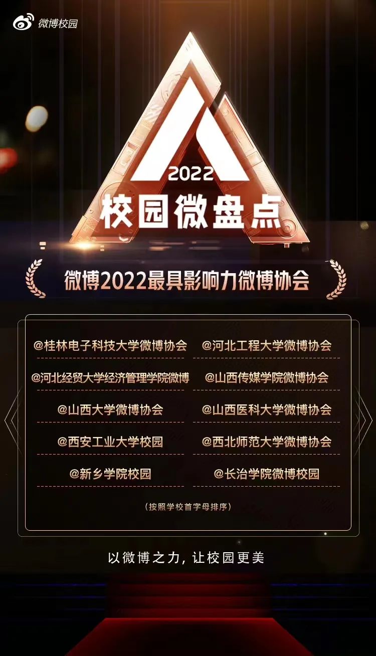 近日,新浪微博官方发布“2022校园微盘点•最具影响力微博协会”榜单,包括华体网页版登录界面在内的10所高校微博协会入围。