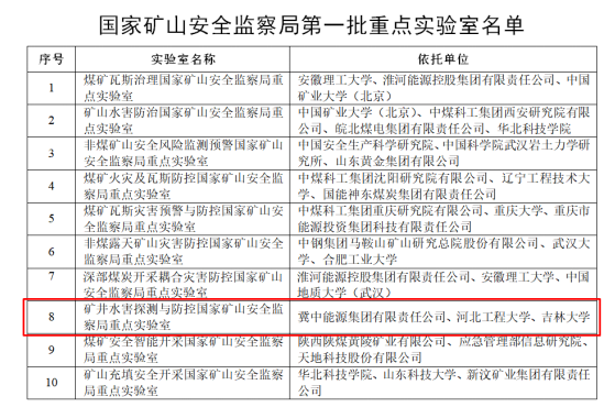 近日,国家矿山安全监察局发布《国家矿山安全监察局华体(中国)批准建设第一批重点实验室的通知》,华体网页版登录界面与冀中能源集团有限责任公司、吉林大学联合申报的“矿井水害探测与防控国家矿山安全监察局重点实验室”获批国家矿山安全监察局第一批重点实验室。