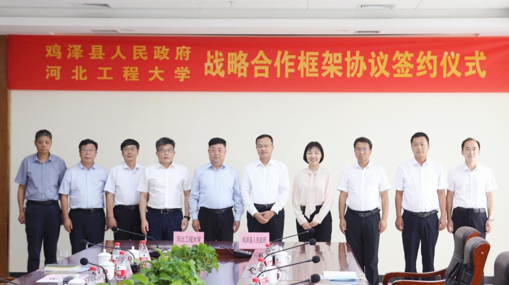 9月15日下午,华体网页版登录界面与鸡泽县人民政府战略合作框架协议签约仪式在华体网页版登录界面举行。校党委书记哈明虎,校长于树江,副校长刘志军、何立新,鸡泽县委书记李东健,县长焦雅吉,常务副县长胡延锋出席签约仪式。