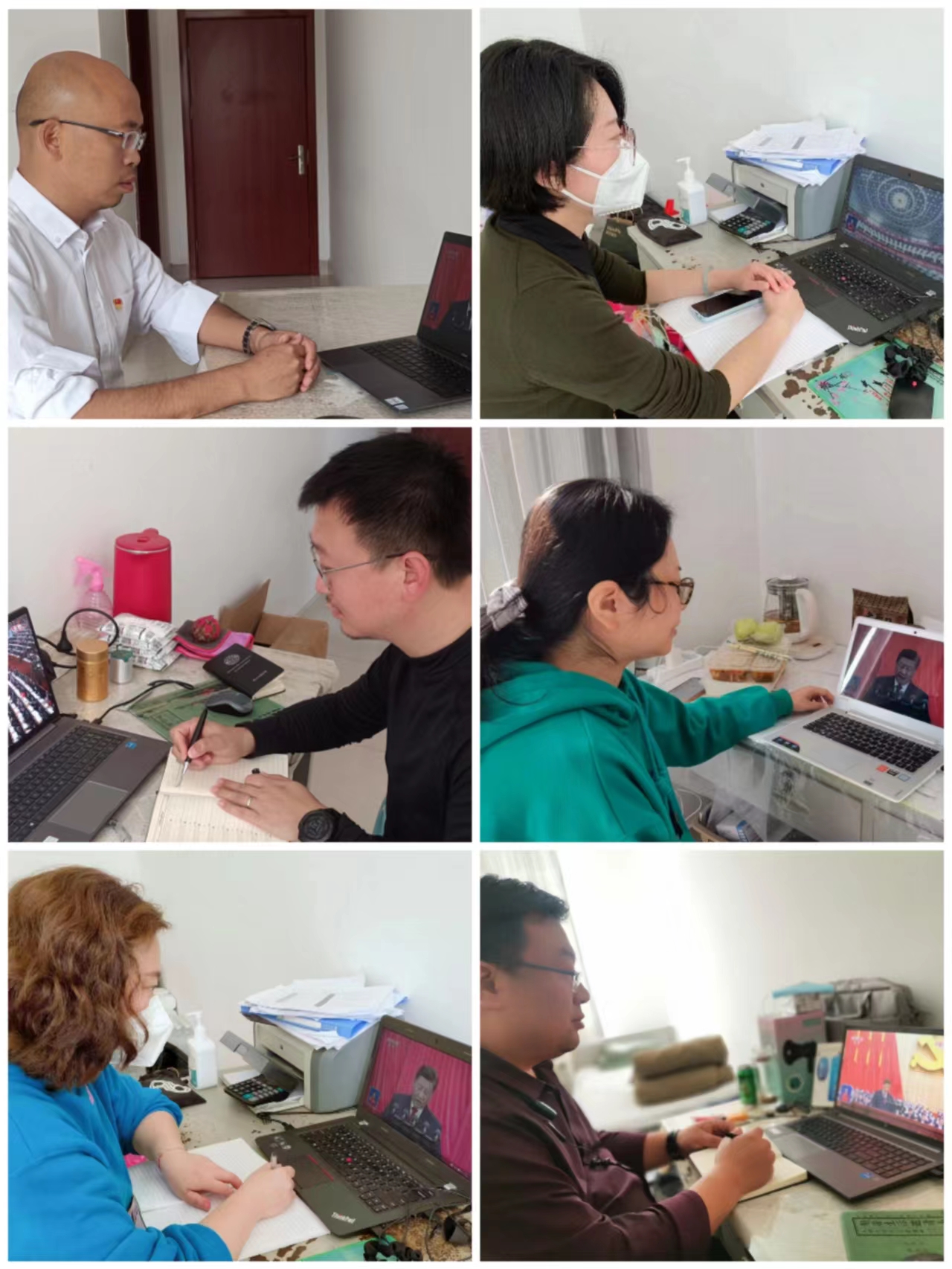 图为党员干部和师生员工收看情况