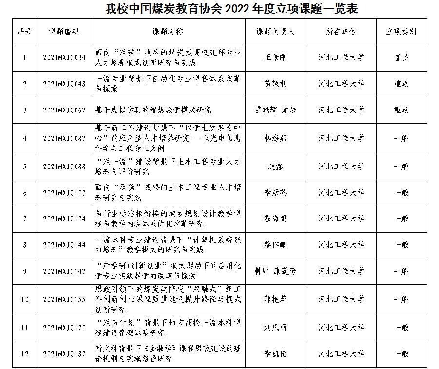 华体网页版登录界面12项课题获得中国煤炭教育协会2022年度立项