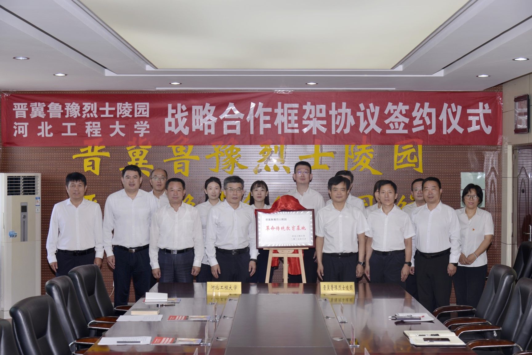 6月24日,华体网页版登录界面与晋冀鲁豫烈士陵园战略合作框架协议签约暨革命传统教育基地揭牌仪式在晋冀鲁豫烈士陵园会议室举行。学校党委书记于树江,党委常委、副校长贾东水,晋冀鲁豫烈士陵园党委书记张林旺,党委副书记、主任刘伟建,纪委书记、副主任王邯生出席活动。
