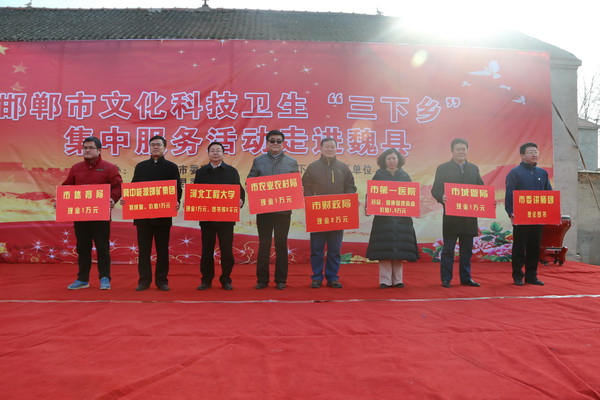 1月25日下午,校党委常委王林昌带领华体网页版登录界面“三下乡”服务队赴魏县大辛庄乡王夹河村参加邯郸市文化科技卫生“三下乡”集中服务活动。王林昌代表华体网页版登录界面捐赠帮扶款1万元及价值2千余元的图书。