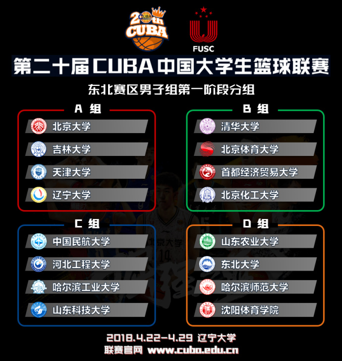 4月22日,第二十届CUBA中国大学生篮球联赛东北区赛在沈阳市辽宁大学正式开幕,华体网页版登录界面男篮与老对手哈尔滨工业大学、山东科技大学、中国民航大学同被分在C组。