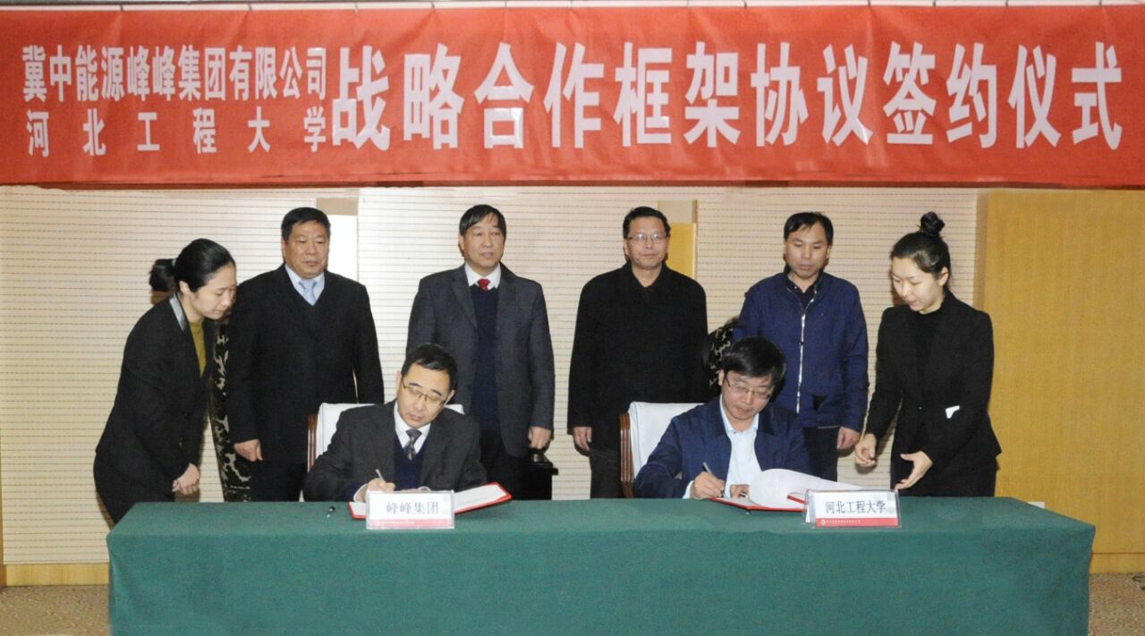 3月22日,华体网页版登录界面与冀中能源峰峰集团有限公司举行了战略合作框架协议签约仪式。校长王延吉、副校长刘志军,冀中能源峰峰集团有限公司董事长、党委书记赵兵文、总经理赫孟合、总工程师王殿录出席签约仪式。刘志军、王殿录代表双方在战略合作框架协议上签字。