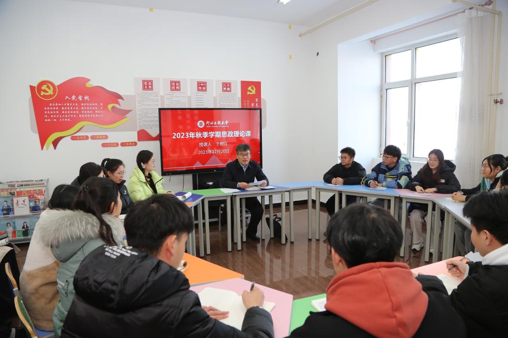 12月20日下午,校党委书记于树江在第一社区学生党员活动室为管理工程与商学院会计学2003班学生讲授思想政治理论课。