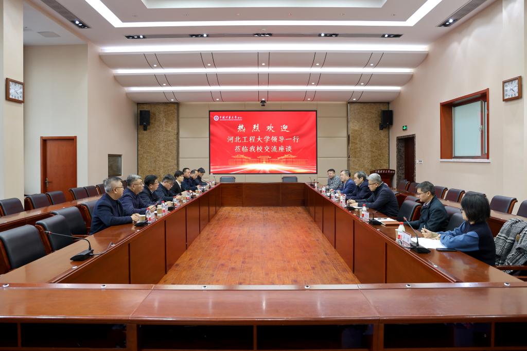 1月11日下午,校党委书记于树江、校长倪志宇率队赴中国矿业大学(北京)调研。中国矿业大学(北京)党委书记徐孝民会见并出席座谈会,校党委常委、副校长何立新、贾东水,中国矿业大学(北京)党委副书记安宇出席。