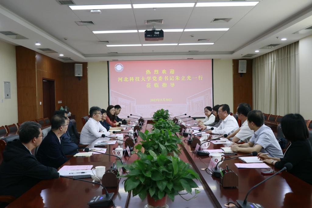 5月30日,河北科技大学党委书记朱立光一行来校调研。校党委副书记、校长于树江,副校长吴国英,党委常委、副校长张金江出席调研活动。