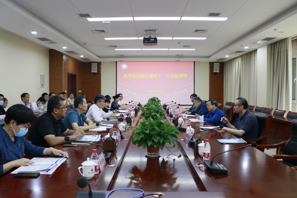 于树江代表学校向杨万泰院士表示热烈欢迎并介绍了学校建设发展情况,感谢他心系桑梓、无私奉献,期望他在人才培养、科学研究、科技成果转化、产业化等方面给予学校大力支持。
