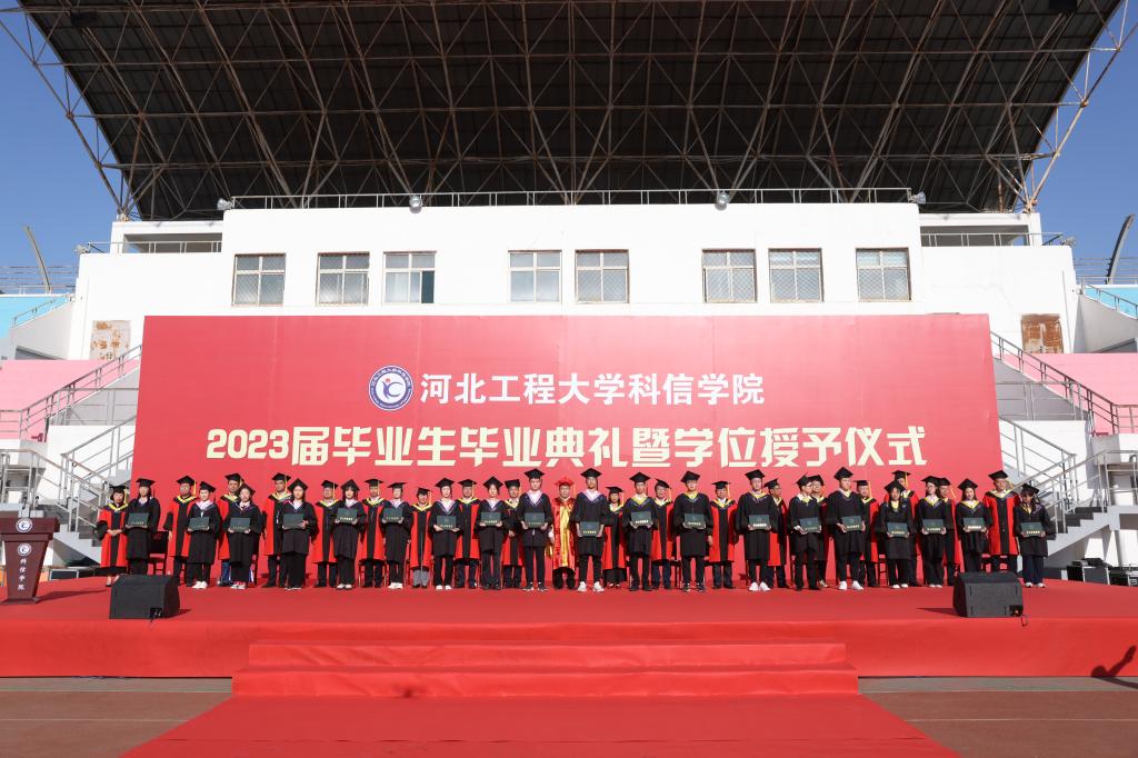6月9日上午,河北工程大学科信学院2023届学生毕业典礼暨学位授予仪式在科信学院体育场举行,河北工程大学党委副书记、校长于树江,校领导董志霄、刘志军、何立新、牛景峰、贾东水、吴国英、张金江、刘心,科信学院学位评定委员会委员、领导班子全体成员出席,2023届毕业生、全体毕业生辅导员参加。