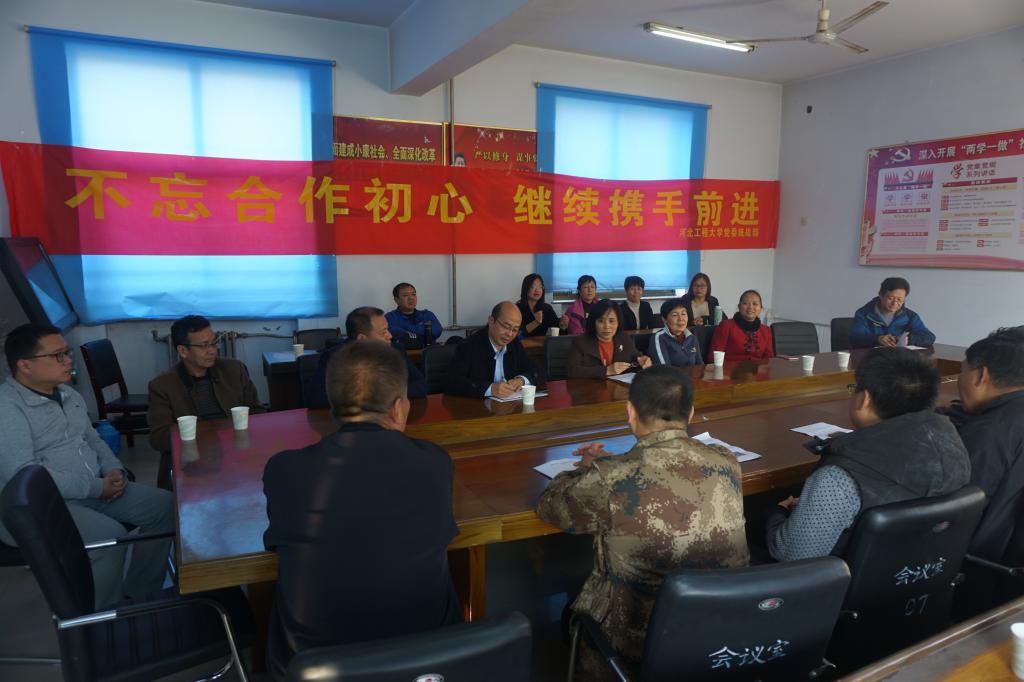 10月29日至30日,校党委围绕“感受制度优势,增强道路自信”主题,组织党外知识分子代表赴石家庄平山县中央统战部旧址、正定县塔元庄村及学校精准扶贫点神堂关村、石榴沟村、西下庄村等地开展教育活动。学校各民主党派代表、党外知识分子联谊会代表及统战部有关人员近20人参加活动。校党委副书记、统战部部长董志霄,副校长、民盟盟员吴国英出席活动。