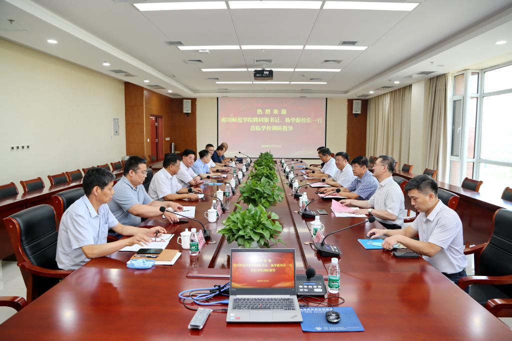 7月12日、13日,廊坊师范学院党委书记韩同银,党委副书记、校长杨学新一行7人到校调研。校党委书记哈明虎,党委副书记、主持工作副校长练继建,党委常委、副校长张金江出席相关活动。廊坊师范学院党委副书记曹庆奎,党委常委、副校长李继林参加调研。
